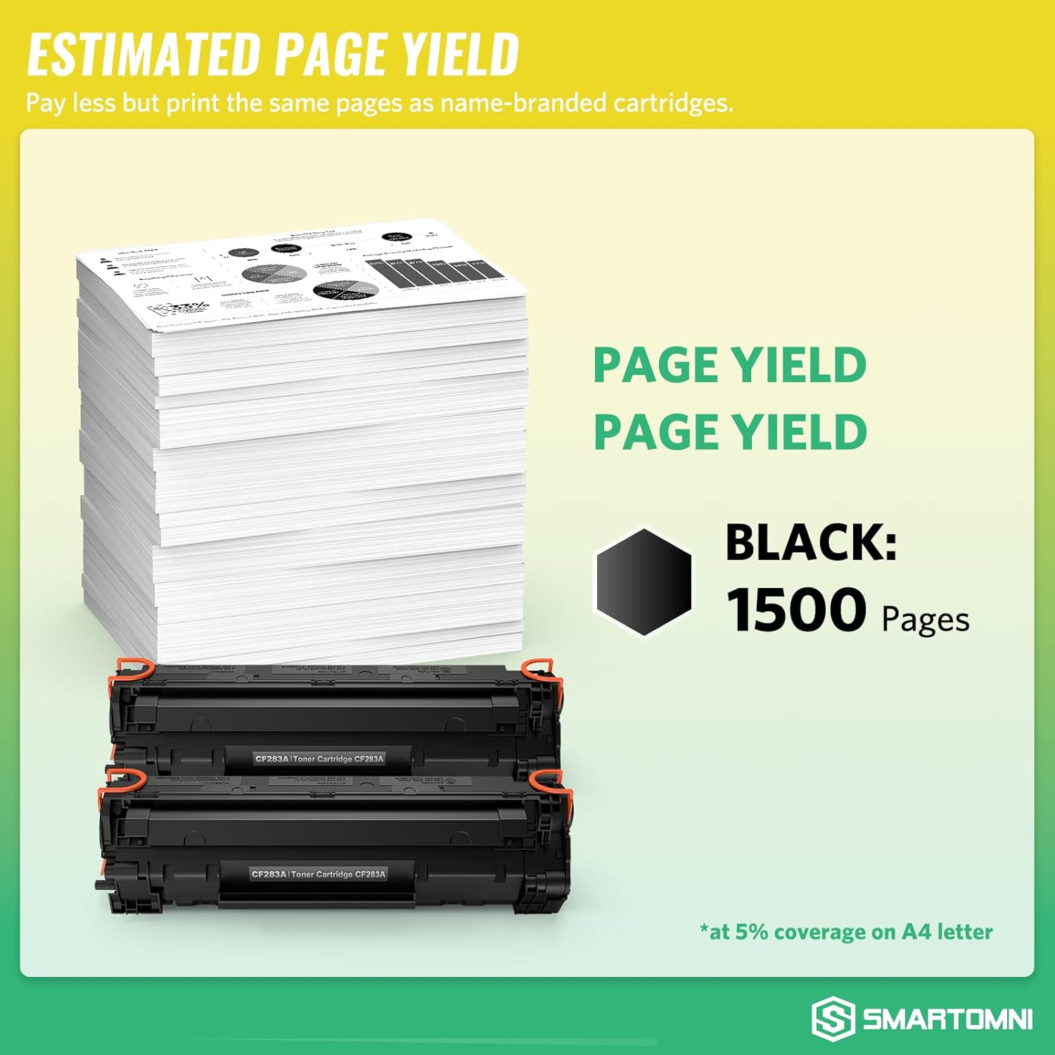 • Estimated Page Yield: Each black toner cartridge can print 1500 pages at 5% coverage of letter/A4 as usual