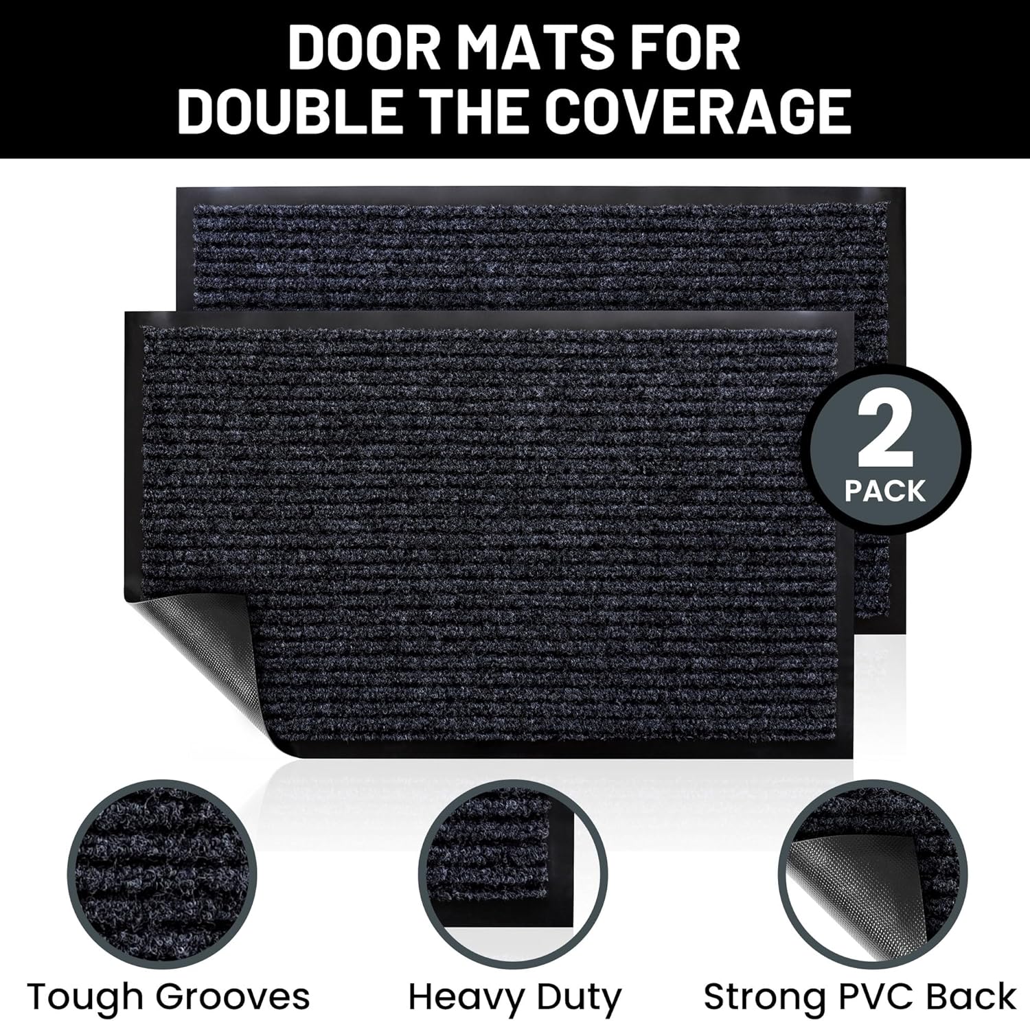 • Includes 2 Indoor Outdoor Floor Mats: Enjoy two amazing heavy duty high quality ribbed polyester door mats (30" x 17") that will be perfect welcome for the everyday home. Amazing value 2-Pack Steel Gray/Black Color.