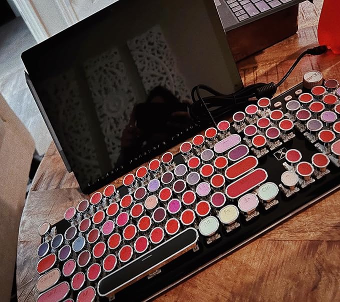 • 【Mechanical Blue Switch Gaming Keyboard】 - Mechanical Blue Switch Gaming Keyboard (Cherry Blue Equivalent) for ultimate gaming performance. Retro keycap looks like a classical typewriter, brings you comfortable typing feeling & stable clicking touch. The Mechanical Keyboard Keys offer medium resistance, audible Click Sound & Tactile Feedback. Sensitive and Responsive. Easy to press and fast response.