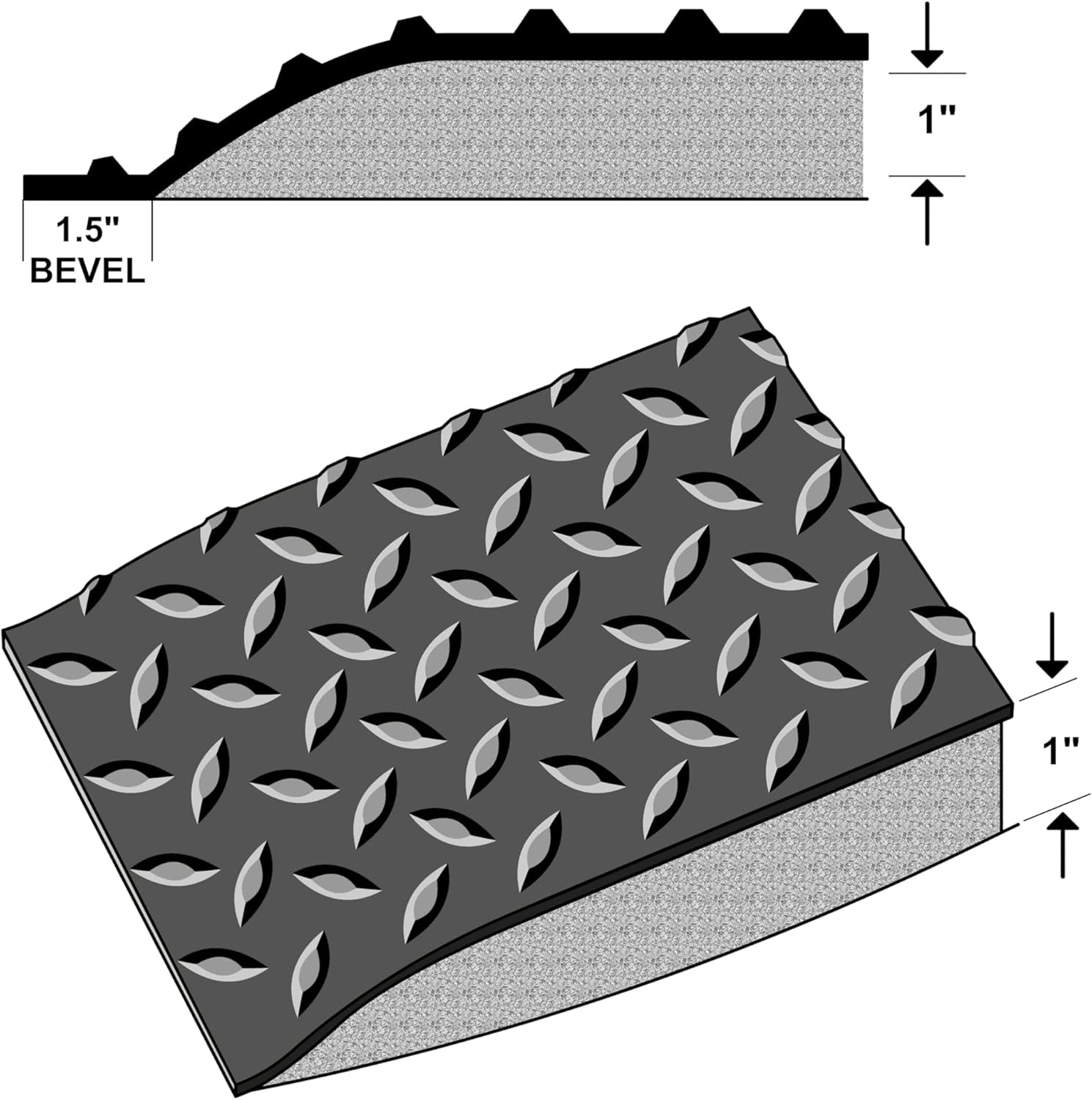 • Edges of sponge base will be beveled to within 1.5” of the top surface to effectively taper the edges of the surface to the floor and create a visibly molded incline around the mat’s perimeter.