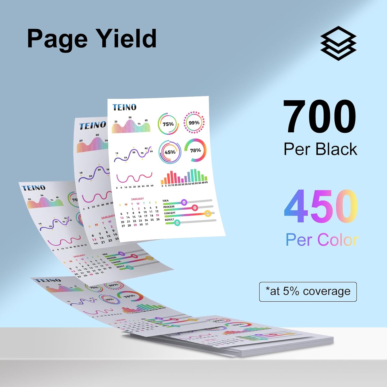• TEINO ink cartridges display ink level real-time, deliver crisp, clear images and text. An ideal choice for home, office, school users looking for professional quality printing
