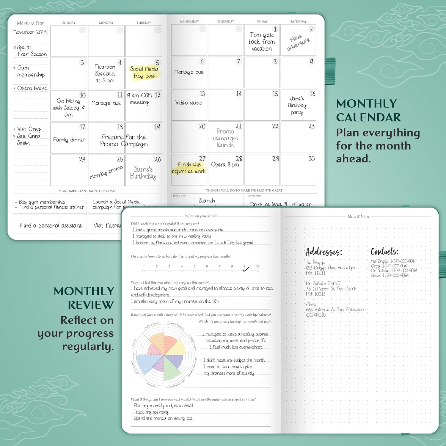 • STAY ORGANIZED & BOOST PRODUCTIVITY – Use spacious monthly calendars and weekly views to plan tasks, deadlines, and appointments. Reflect on your progress regularly with comprehensive monthly reviews.