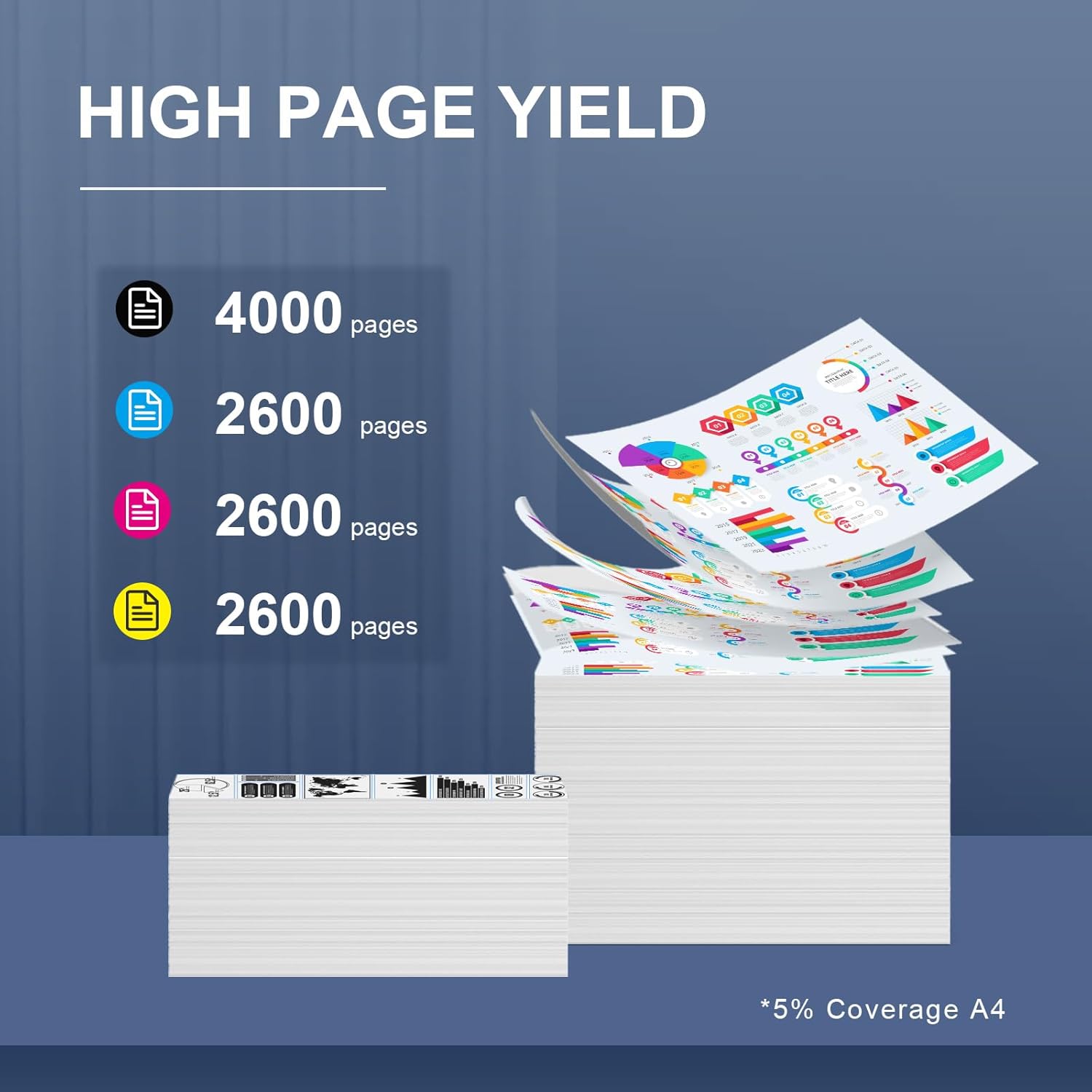 • 【High Page Yield】: Up to 4,000 Pages per TEINO 305A black toner cartridge; Up to 2,600 Pages per TEINO 305A cyan magenta yellow color toner cartridges at 5% coverage of A4 Paper.