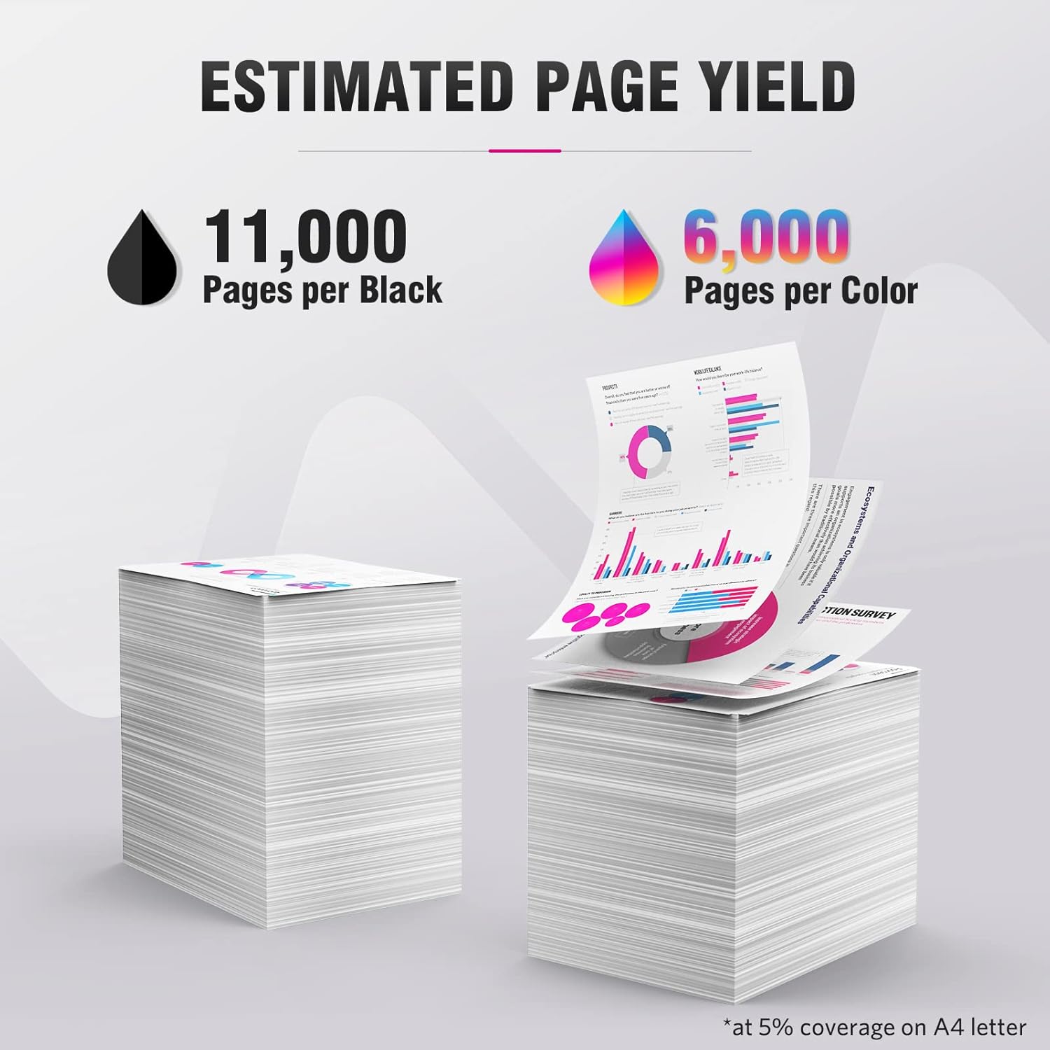• High Yeild: 11000 pages per Black ink cartrige , 6000 pages per color ink cartridge on 5% coverage (letter/A4)
