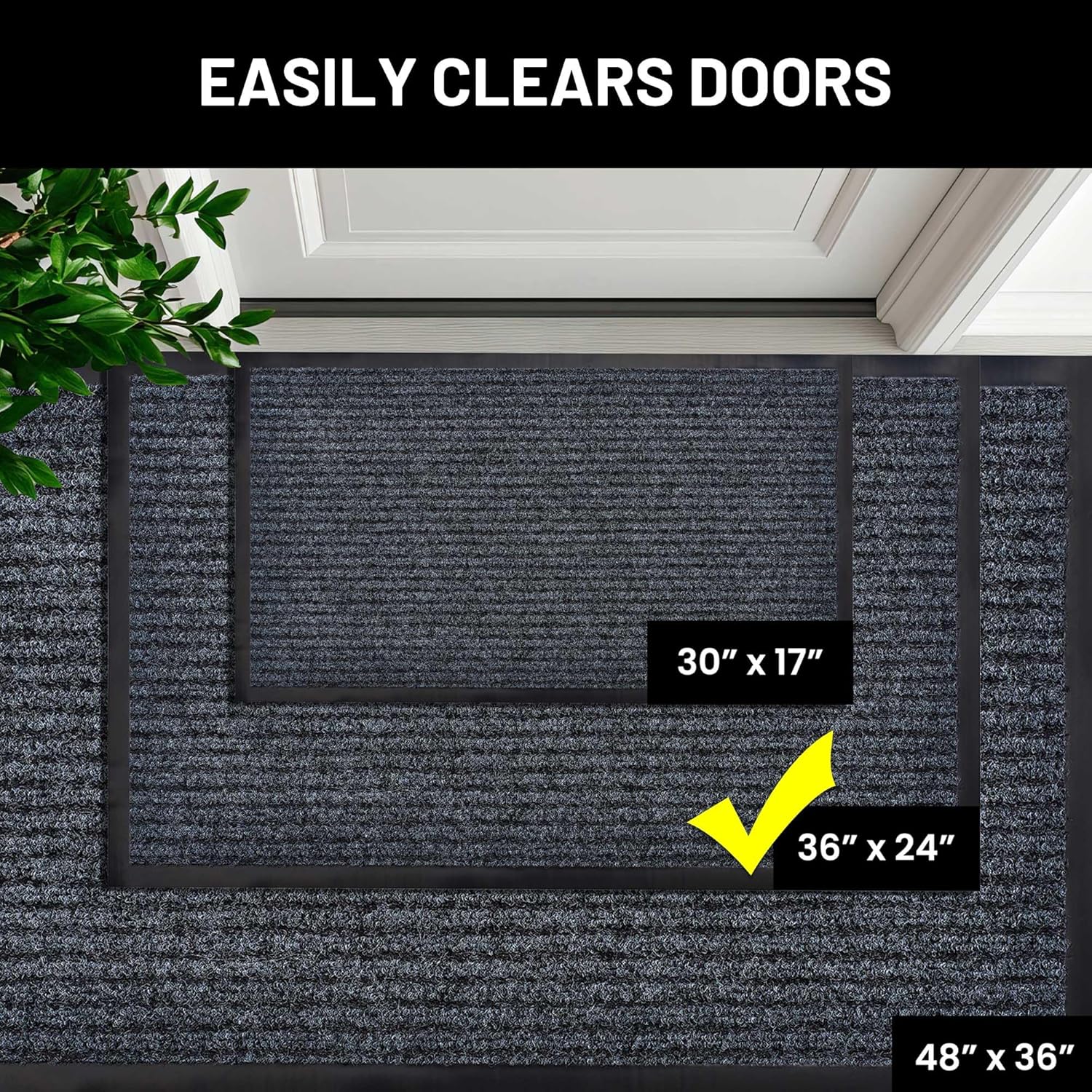 • Includes 2 Larger Indoor Outdoor Floor Mats: Enjoy two amazing heavy duty high quality ribbed polyester door mats (Larger 36" x 24") that will be perfect welcome for the everyday home. Amazing value 2-Pack.