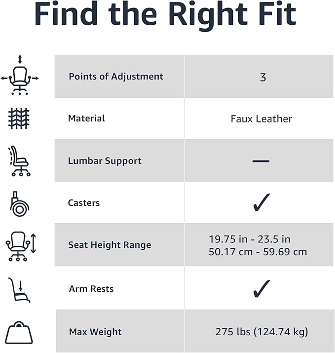 Amazon Basics Classic Puresoft PU Padded Mid-Back Height Adjustable Office Computer Desk Chair with Armrest, 25.75"D x 24.25"W x 42.25"H, Brown