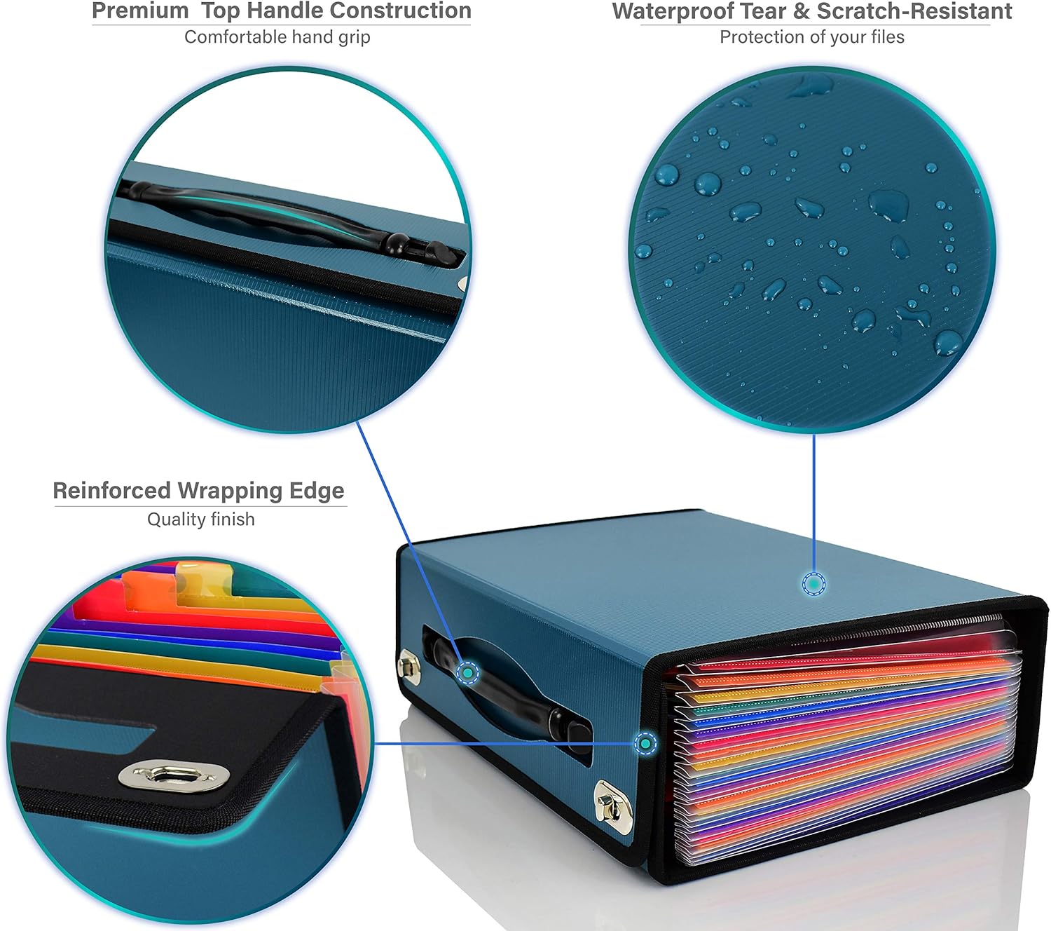 • 24 Individual Pockets with Colorful stylish design are tabbed to allow for adding handwritten labels, ensuring each section can be instantly identified for quick access.
