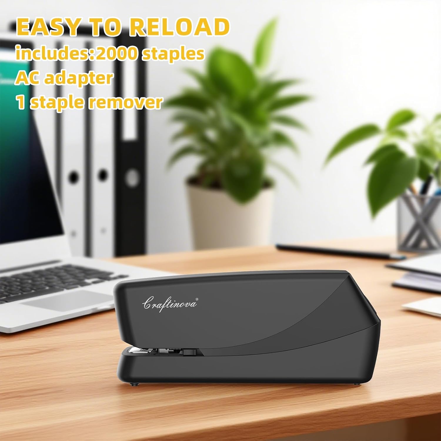 • PERFECT SET ELECTRIC STAPLER: Includes 2000 Staples, AC Adapter and staple remover. Four AA batteries are not compatible with rechargeable batteries. The charger adapter has CE certification for the stapler.