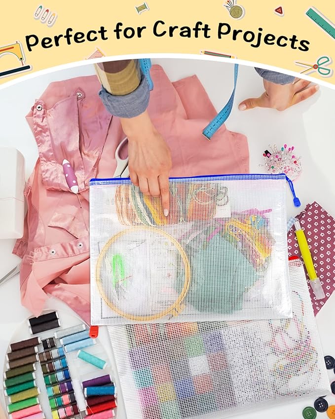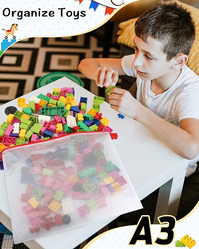 Umriox 5PCS Mesh Zipper Pouch 16.9x12.4 in, Zipper Bags, Extra Thick, Zipper Pouches for Organizing, Large Storage Bags for Puzzles Organizing