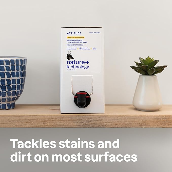 ATTITUDE All-Purpose Cleaner Refill, EWG Verified, Plant-Based & Vegan, Multi-Surface Cleaning Spray, Citrus Zest Scent, 67.6 Fl Oz