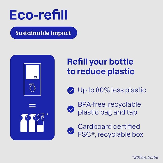 • ECO-FRIENDLY REFILL: This all purpose cleaner refill is packaged in FSC-certified, recyclable cardboard so you can refill your bottles over and over again to support a more sustainable lifestyle.