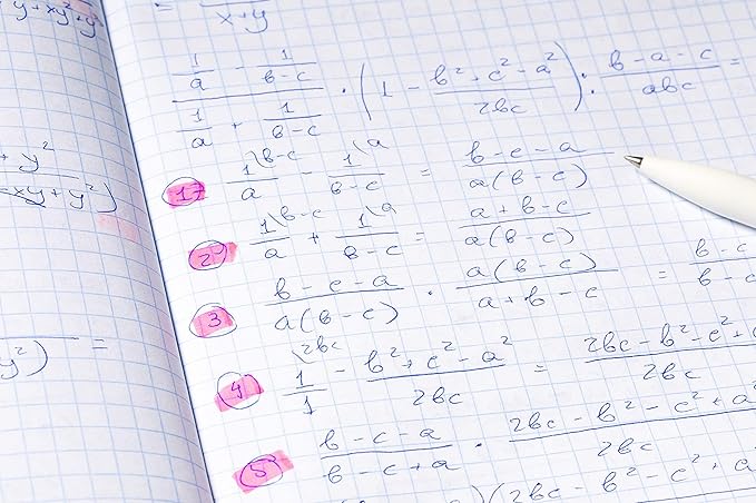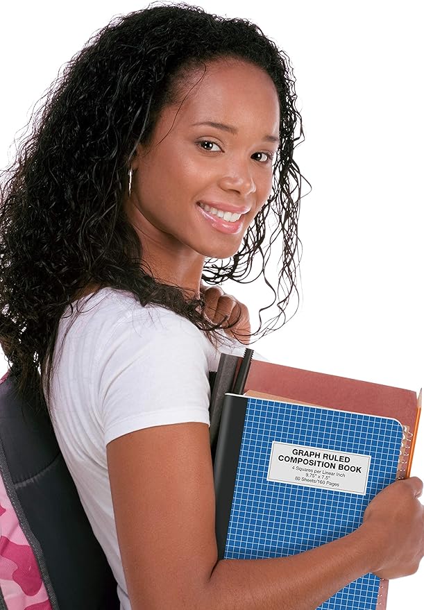 • QUAD-RULED - Set of (12) twelve 9-3/4 x 7-1/2 inch thread-bound, wireless 80 sheet/160 page, quadrille 4 x 4 graph paper composition books with 4 squares per linear inch, perfect for plotting math equations and creating graphs.