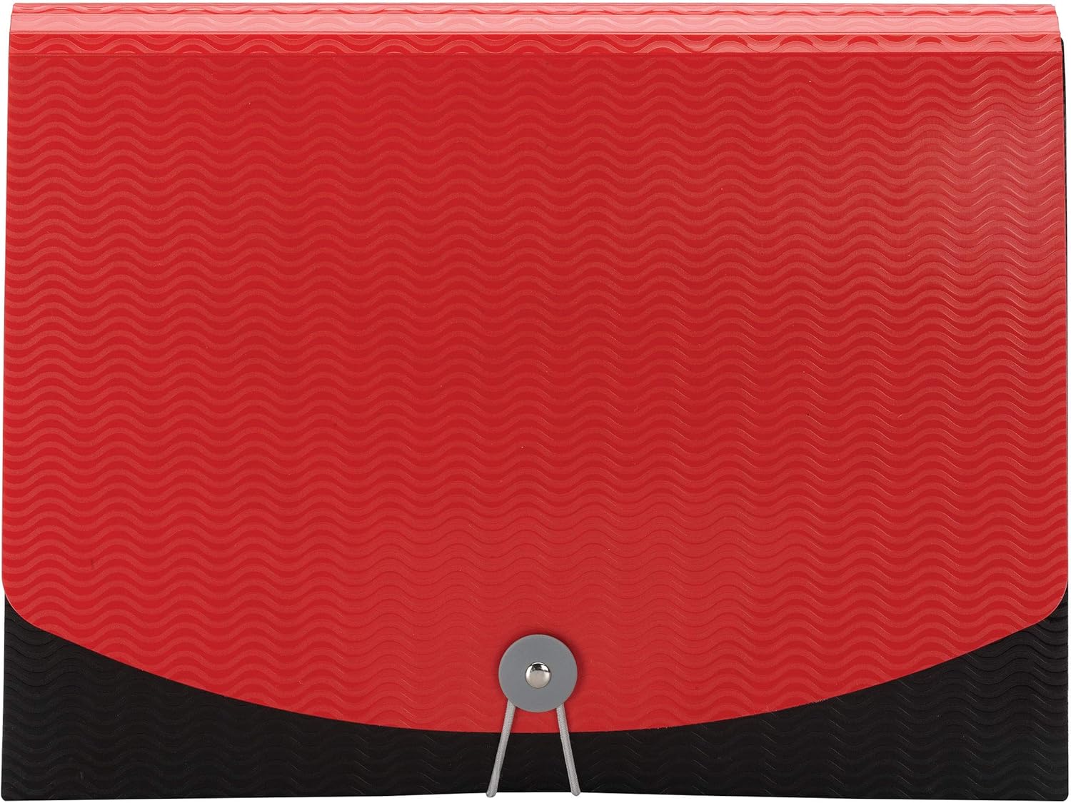 • Keep projects and tasks organized with our Poly Expanding File, featuring 6 clear dividers inside a black case and a unique embossed wave pattern on the solid red flap cover