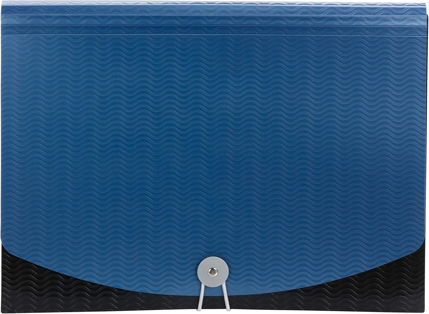 • Keep projects and tasks organized with our Poly Expanding File, featuring 6 clear dividers inside a black case and a unique embossed wave pattern on the solid blue flap cover