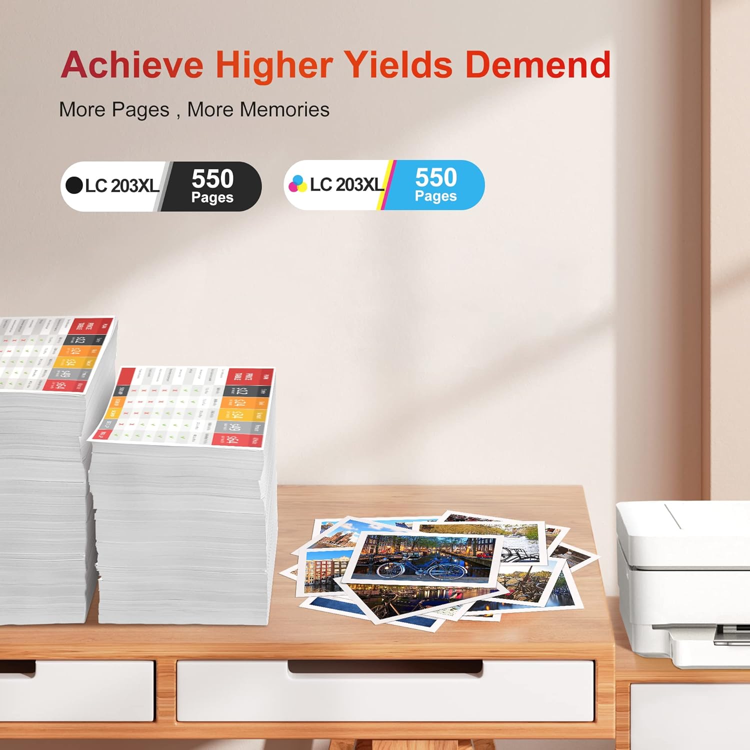 • High Page Yield: Up to 550 pages per LC203XL LC203BK, 550 pages per LC201CL Bother Ink Cartridges Color (Based on 5% coverage)