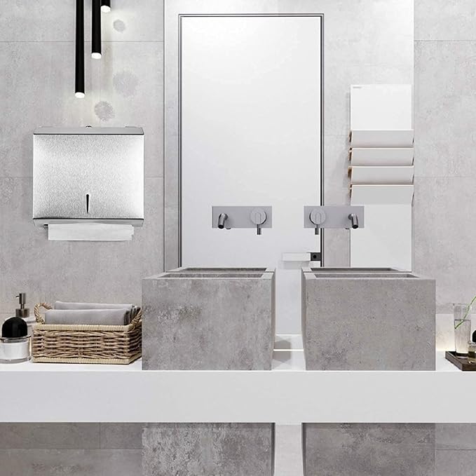 Wall-Mounted Comercial Paper Towel Dispenser, Brushed Stainless Steel Bathroom Hand Towel Dispenser with Lock Design, Large Capacity 250 C-Fold 300 Multi-Fold Capacity