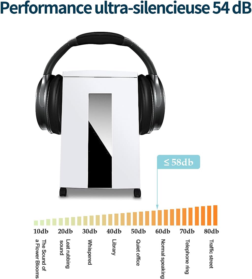 • 【Ultra-Quiet Performance】Low noise level 58dB ultra-quiet performance; 6 gallons pull-out waste bin with large easy viewing transparent window. Perfect for a home paper shredder or a quiet paper shredder for office environments.