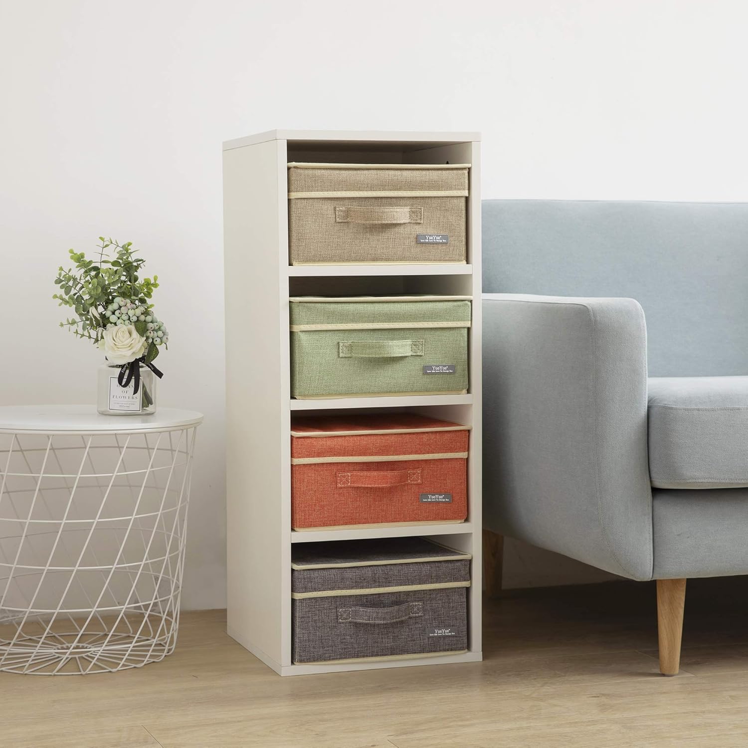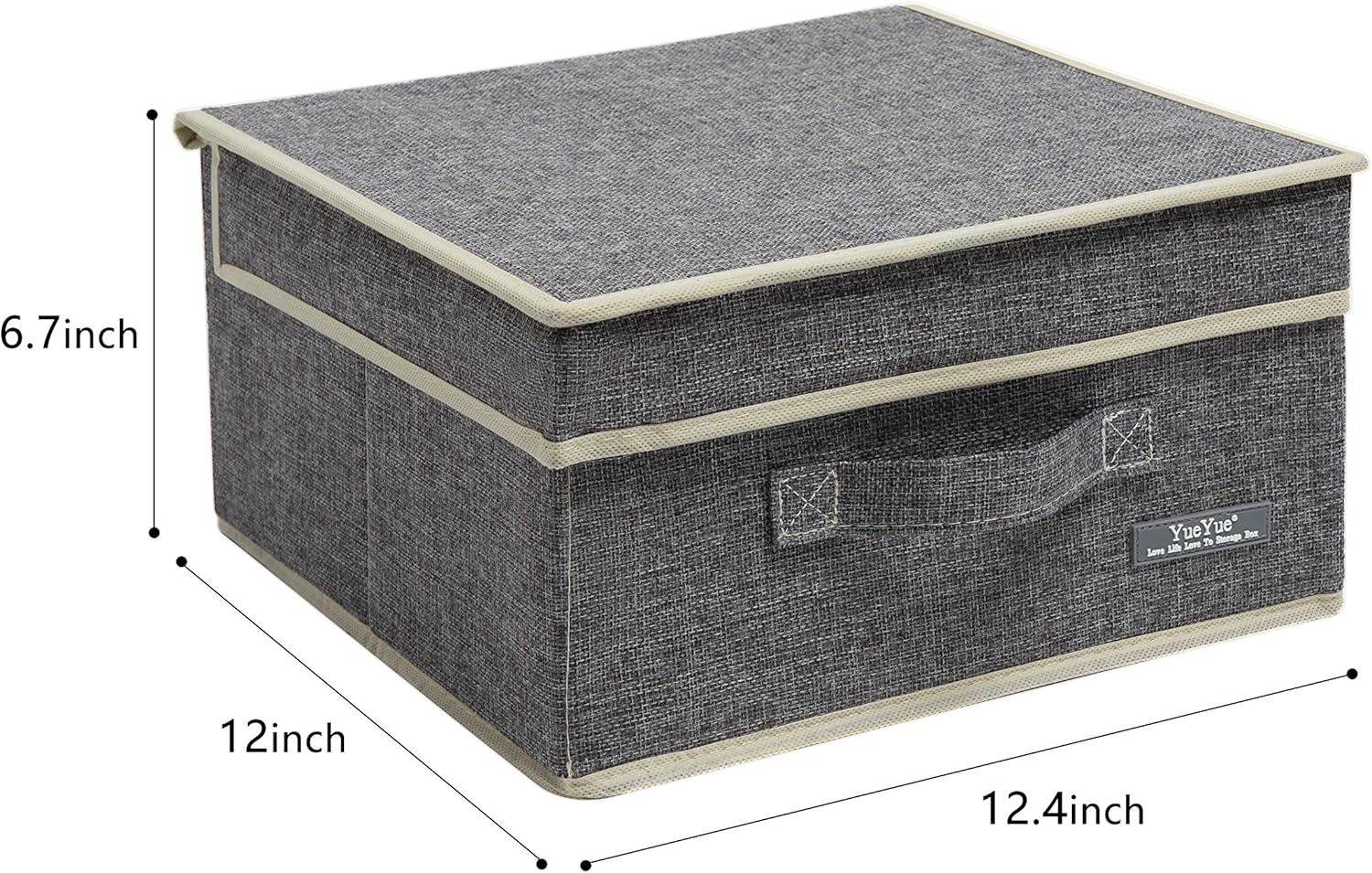 • 【SENIOR QUALITY】YueYue Small Fabric Storage Box With lid , reinforced by Linen pattern fabric and durable Cardboard(2mm thickness), its breathable , wear resistance, excellent sealing, durable character, protection of your things from dust ,can meet your long terms storage needs.