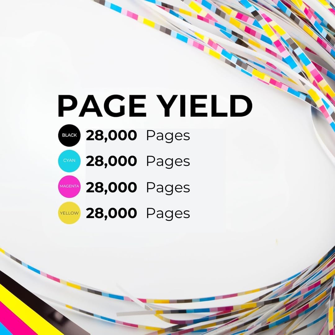 • π‡πˆπ†π‡ 𝐏𝐀𝐆𝐄 π˜πˆπ„π‹πƒ: Each replacement toner cartridge delivers up to 28,000 pages at 5% coverage on letter/A4-sized paper. Actual yield may vary depending on usage and content.