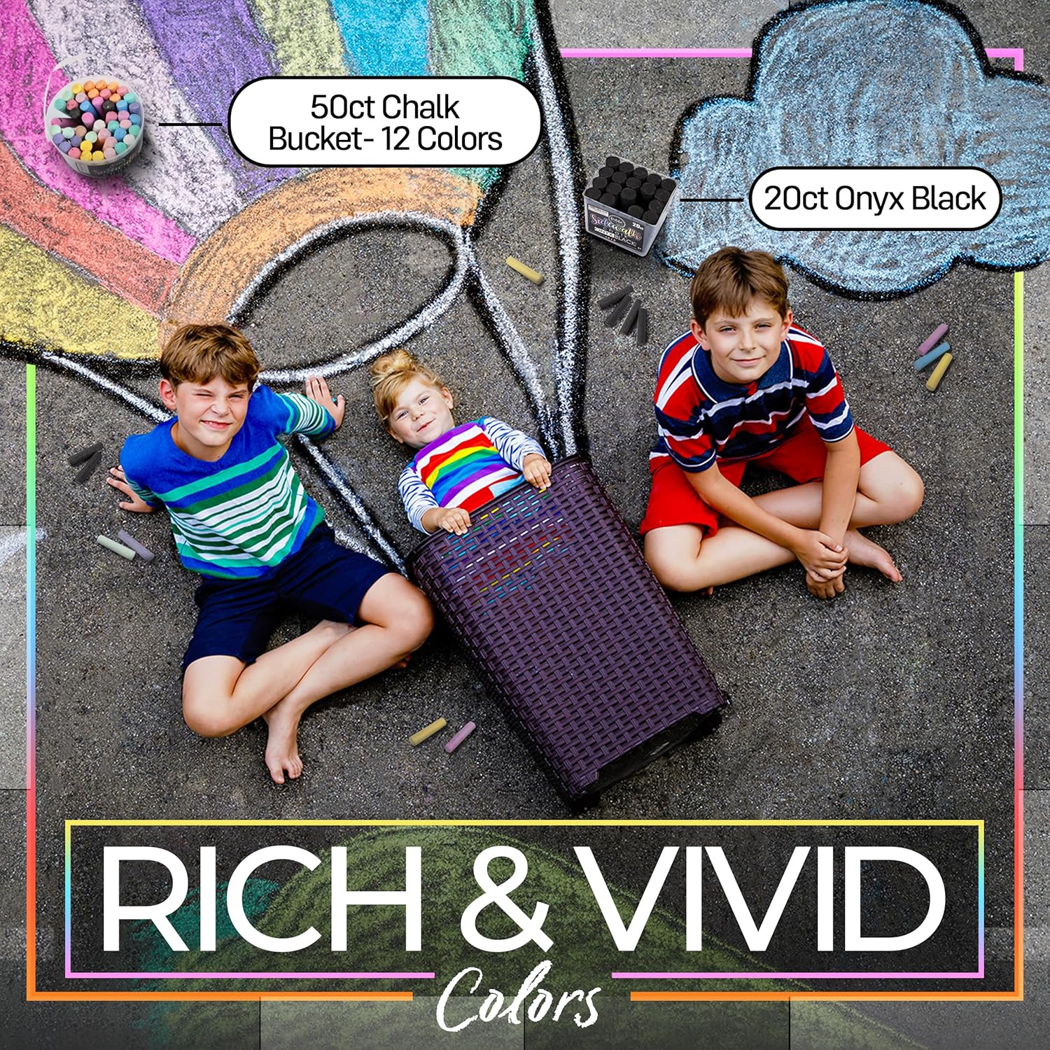• Vibrant Street Art: Dive into a colorful world with our 50-piece chalk set of bright, multicolor sidewalk chalk. Whether it's art or just fun, this street chalk is your go-to for vibrant sidewalk creations. This sidewalk chalk non toxic pack is perfect for coloring and drawing, let your imagination run wild