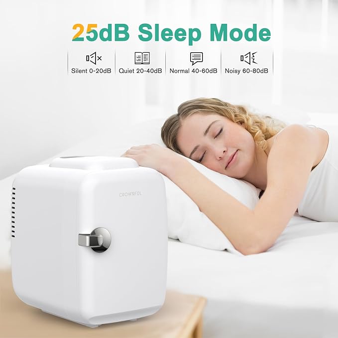 CROWNFUL Mini Fridge, 4 Liter/6 Can Portable Cooler and Warmer Personal Refrigerator for Skin Care, Cosmetics, Beverage, Food,Great for Bedroom, Office, Car, Dorm, ETL Listed (White)