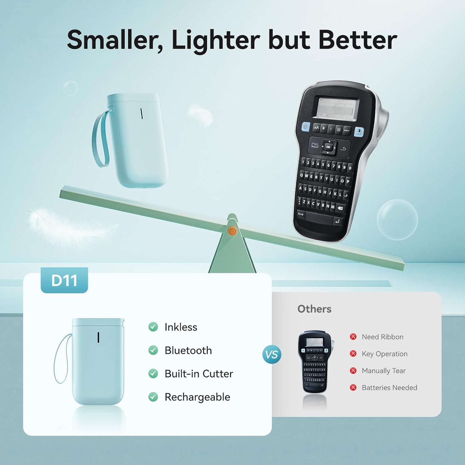 • 【NIIMBOT D11 LABEL MAKER】After the technical updating, we combine the label maker with the smart device, which is more convenient and powerful. The weight and volume are only half of the traditional version. from now on, we bid farewell to the heavy, power-consuming, and money waste old version.