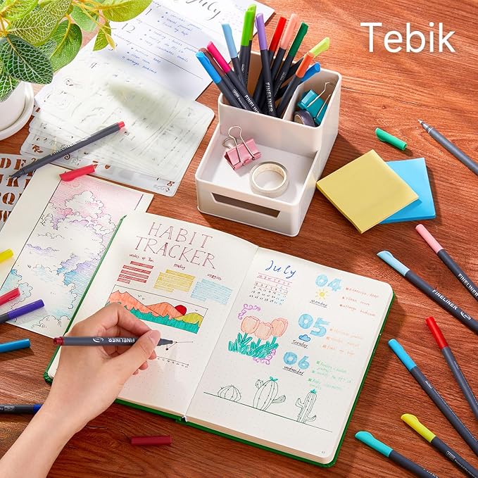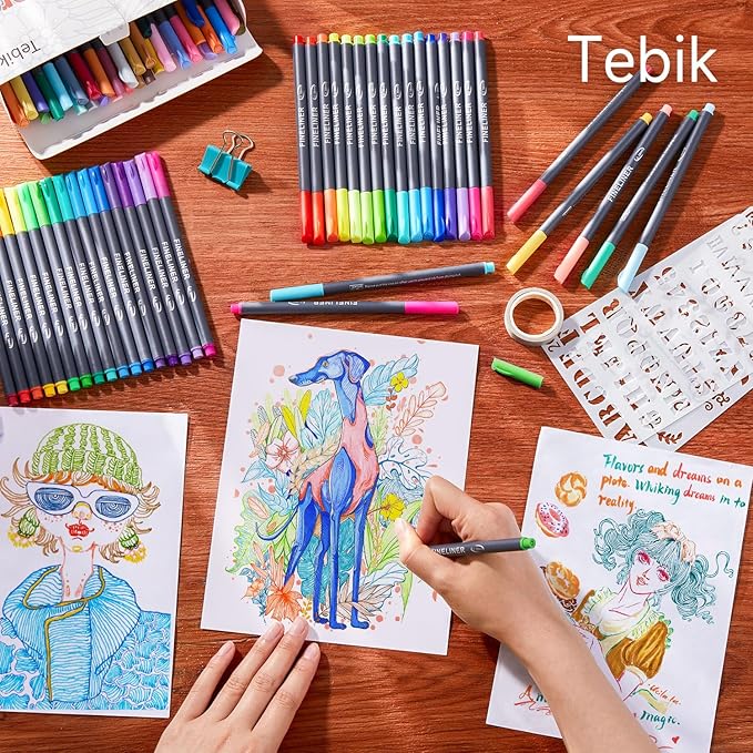 • High Quality Water-Based Ink: Our fineliner pens filled with top quality ink that flows easily, every pen will provide smooth writing without worrying that the ink will dry out prematurely. No bleeding, no smearing, perfect for journal & planner. The ink is water-based and acid free, our 100 fineliner pens can be enjoyed by everyone-completely kid safe, conforms to ASTM D-4236 & EN71.