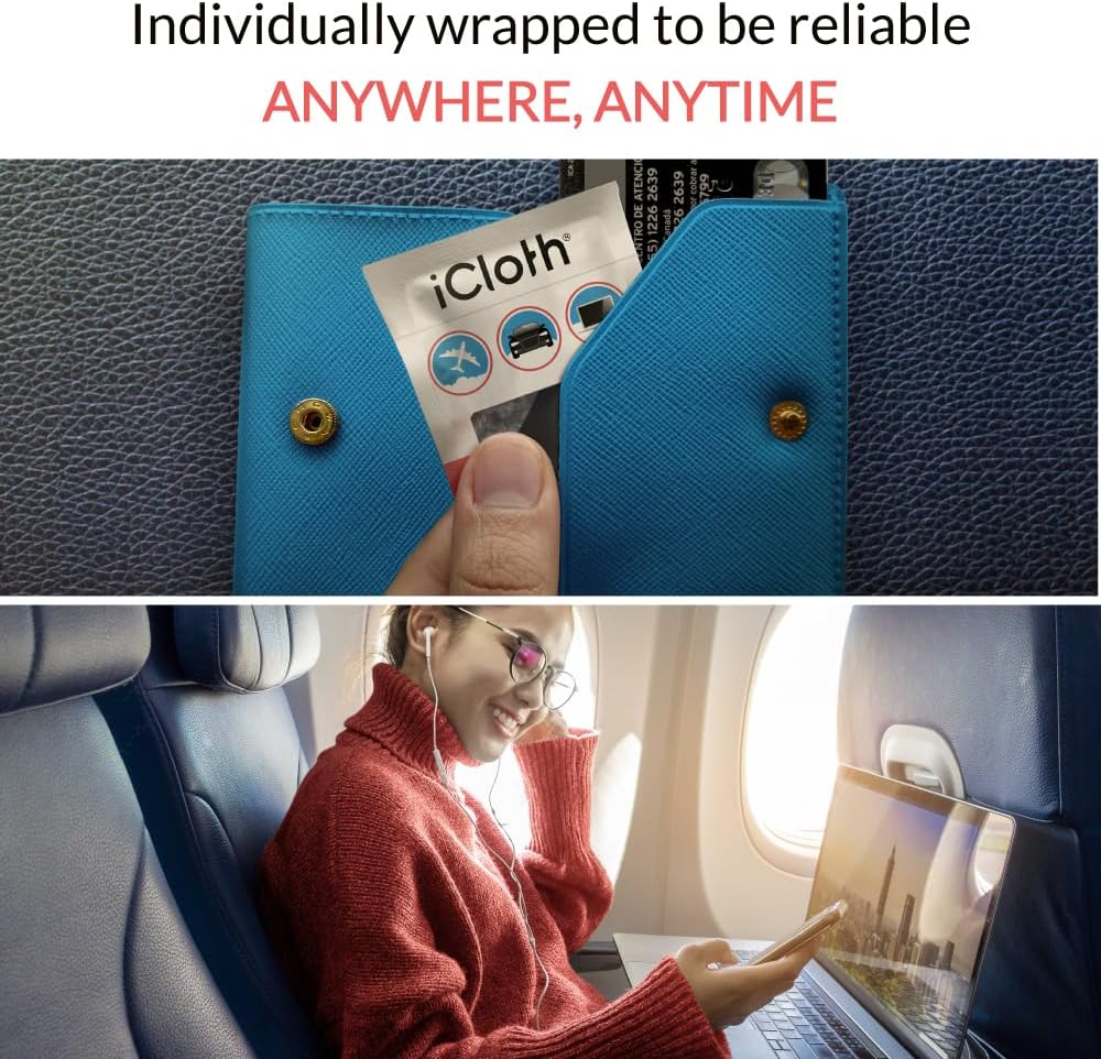 • PERFECT FOR ALL SCREENS AND ANTI-GLARE COATINGS – iCloth wipes effectively clean all types of screens with an ultra-pure formula of 70% isopropyl alcohol (IPA) and deionized water, ensuring no damage to sensitive coatings on smartphones, laptops, computer monitors, car touchscreens, and other electronics.
