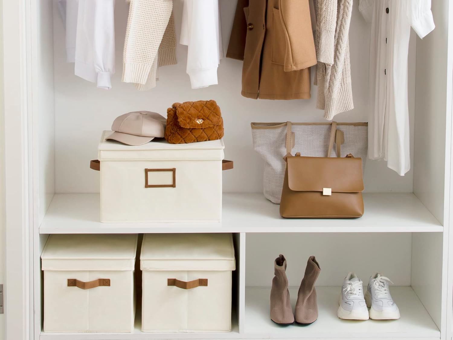 • Closet storage bins with 2 PU sewn-in handles can support a weight of up to 30 pounds.