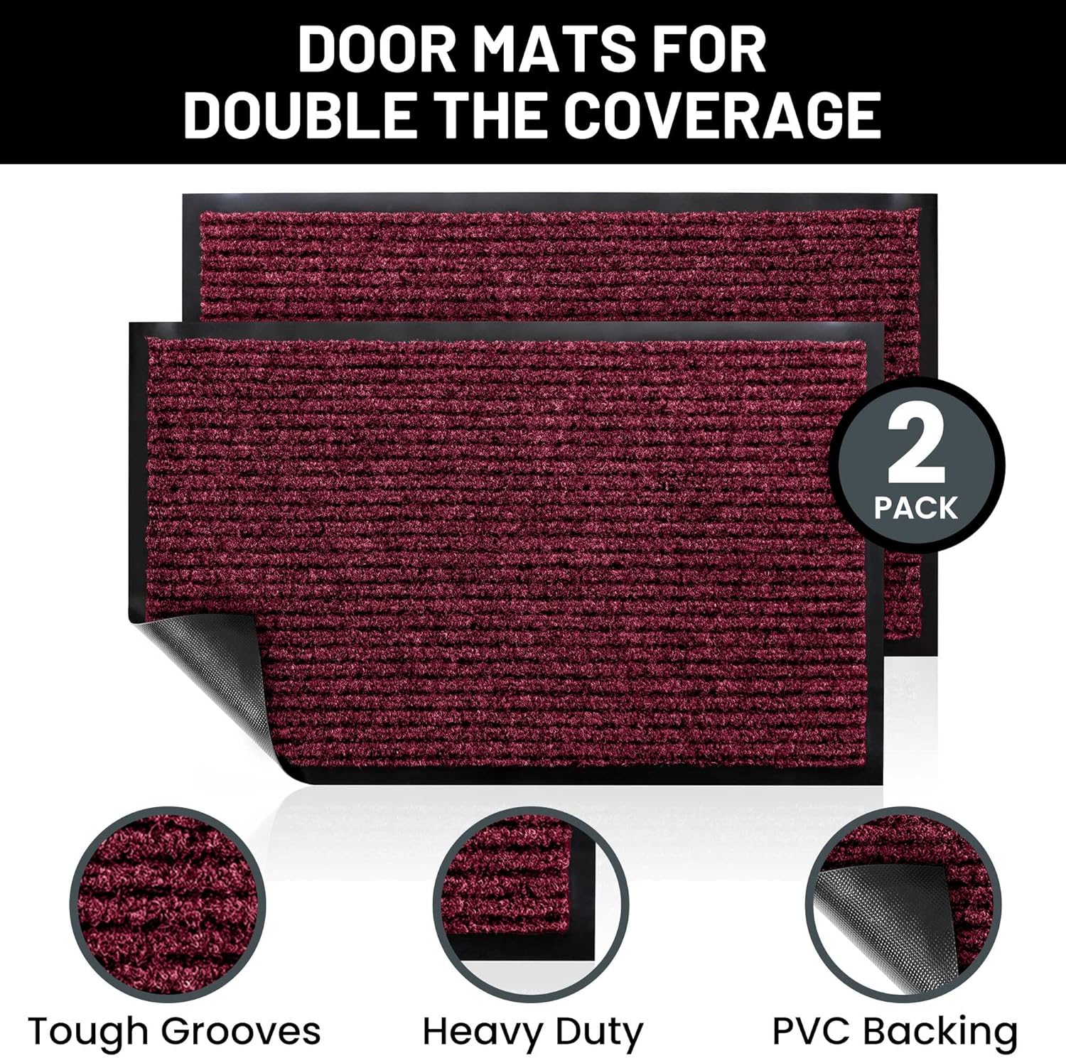 • Includes 2 Indoor Outdoor Floor Mats: Enjoy two amazing heavy duty high quality ribbed polyester door mats (30" x 17") that will be perfect welcome for the everyday home. Amazing value 2-Pack Red Color.