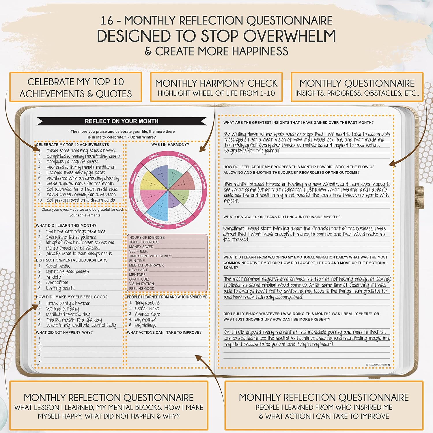 • WEEKLY PLANNER 2025-2026 - Increase your productivity and happiness. This is a deluxe life goal planner showing you how to become the best possible version of yourself on a mental, physical & interpersonal level using the law of attraction vibration guide. The weekly and monthly planner is also a daily, productivity, goal, business planner, to do list planner, notebook & gratitude journal all-in-one.