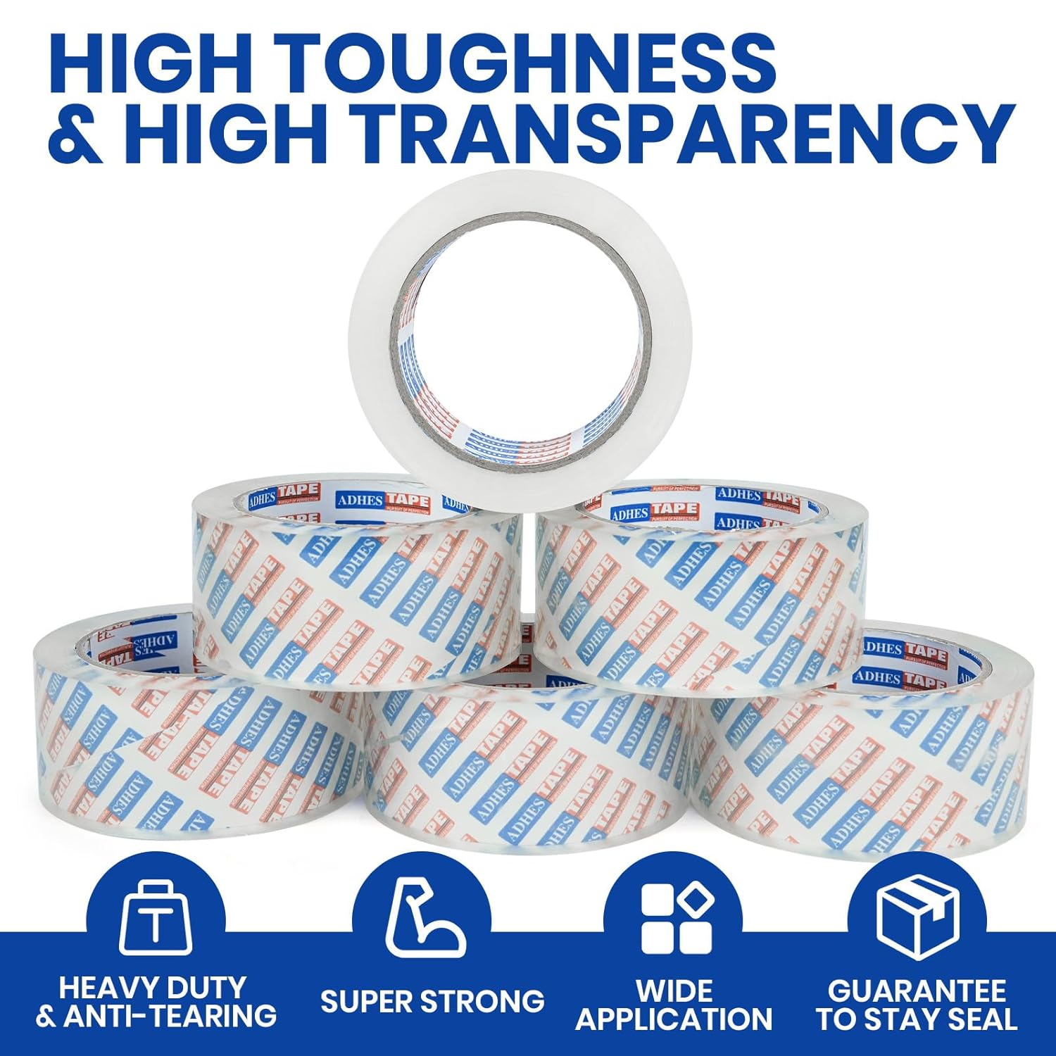 ADHES Packing Tape Shipping Tape Packaging Tape for Moving Boxes Heavy Duty Clear, 50M Length 4.8cm Width,2.6Mil Thickness