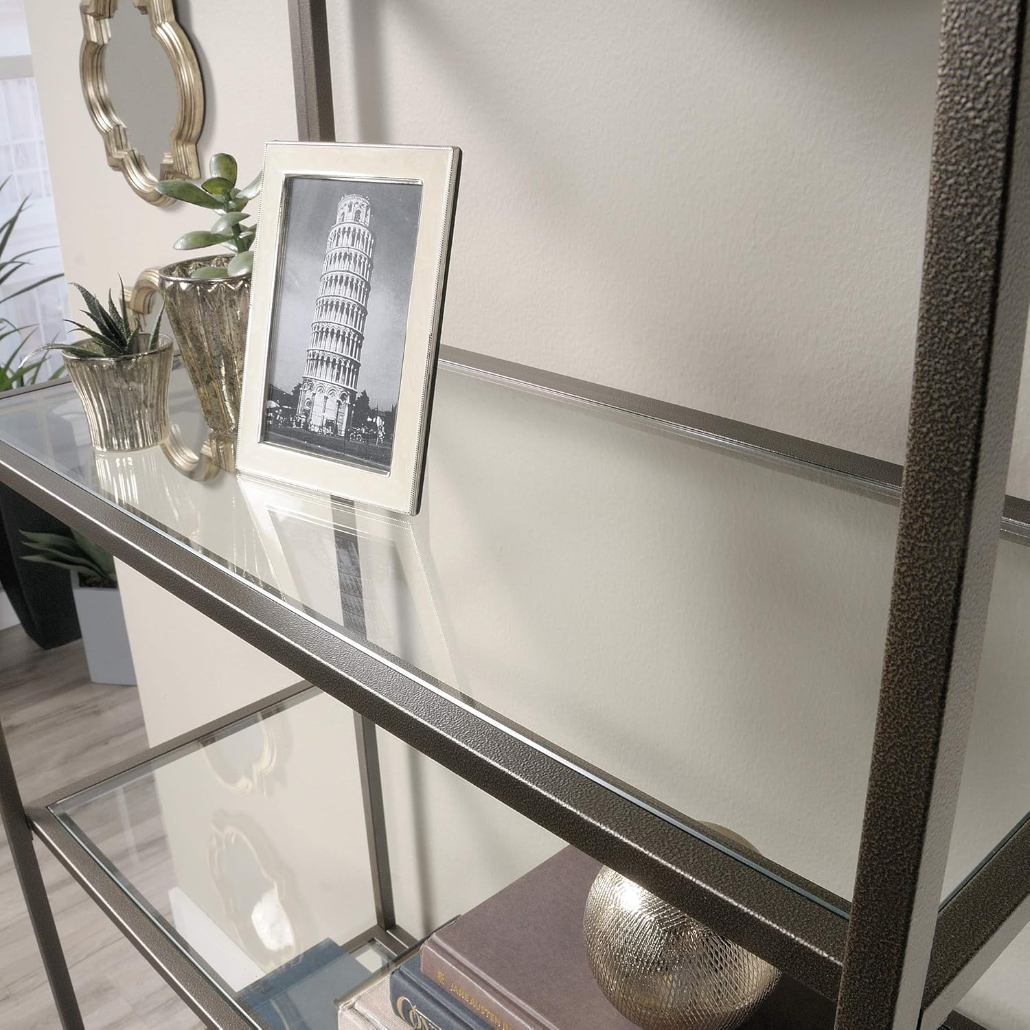 Sauder International Lux Book Shelf 5 Tier Modern Metal Multipurpose Bookcase with Glass Shelving, in a Bronze Finish