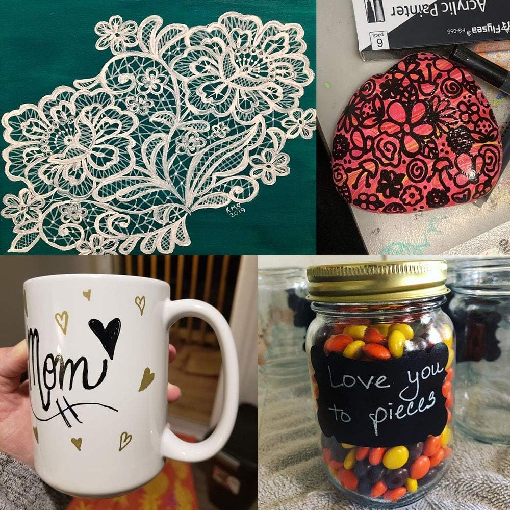• 【High Quality and Safe】Package with 3 pcs Black +3 pcs White. Acrylic paint pens are made with high quality oil ink - abundant ink, High purity color, strong covering force,waterproof, fade proof, non-bleeding. non-toxic, no odor, no strong smell. Conform to ASTM D-4236 & EN71-3.
