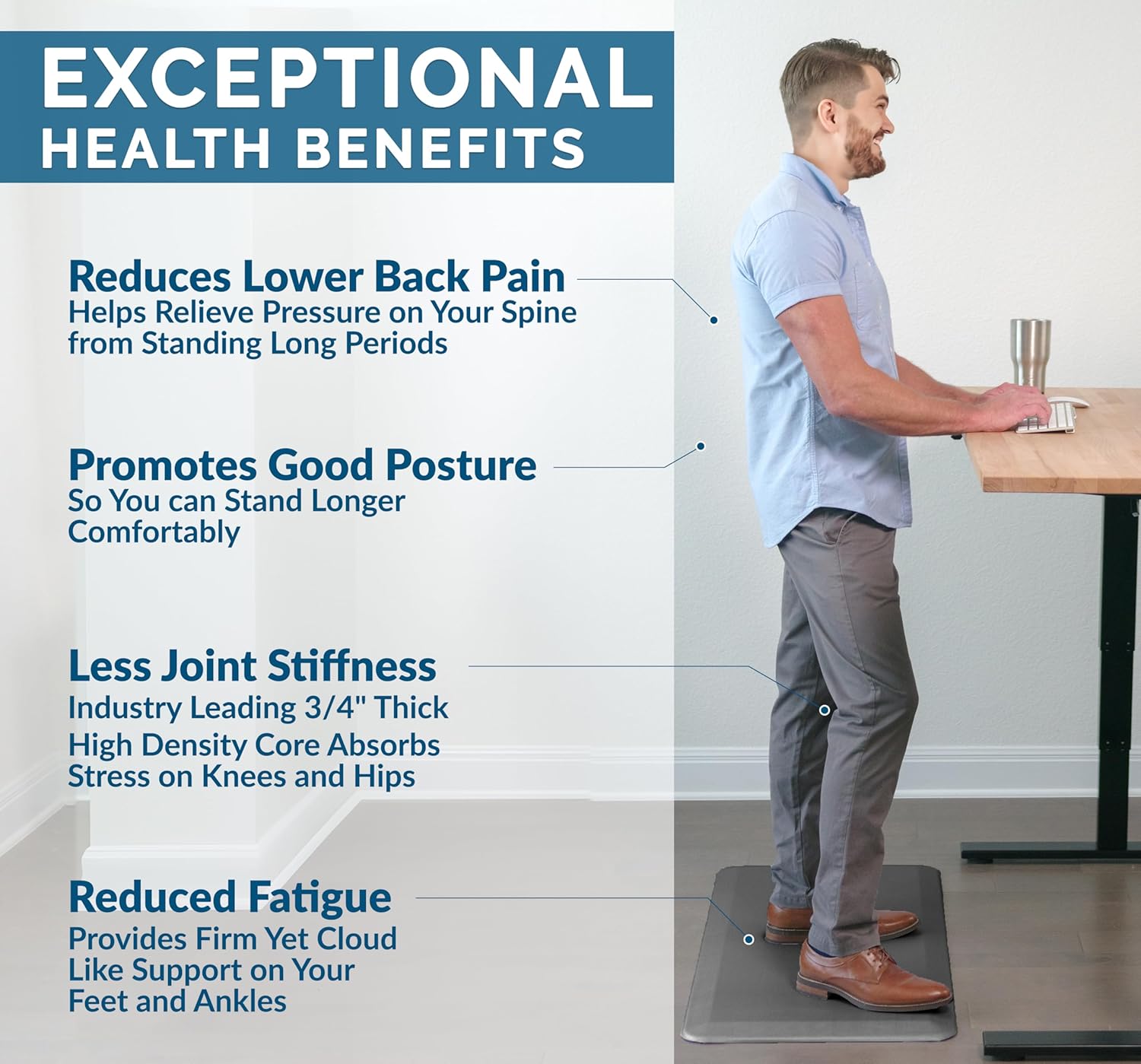 • Easy to Clean and Maintain: Simply wipe down the standing desk mat or anti-fatigue kitchen mat with a damp cloth for quick and easy maintenance, keeping your space clean and comfortable.