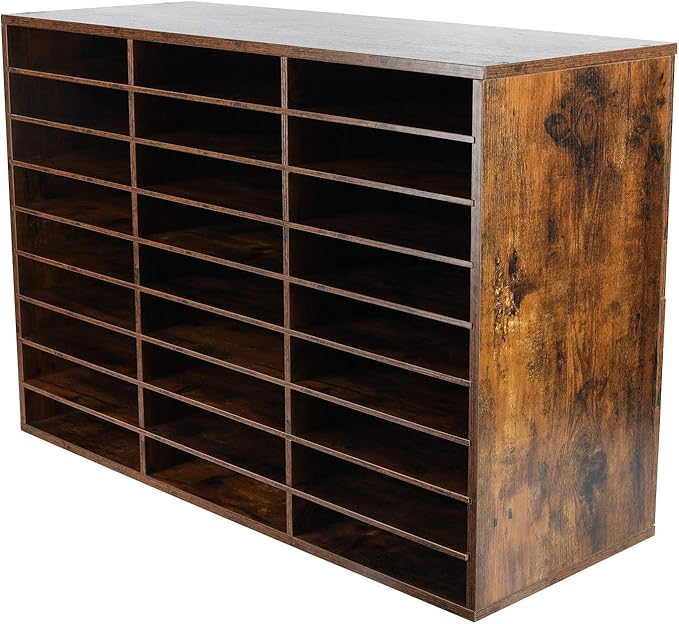 • 27-Compartment Mail Sorter Organizer: Hold 500+ A4 paper sheets in each compartment in this mail organizer. With 27 compartments (12 x 9 x 2.1 inch eash slots), store comics, magazines, and travel brochures effortlessly. EPA-certified particleboard ensures long-term durability for office/classroom use.