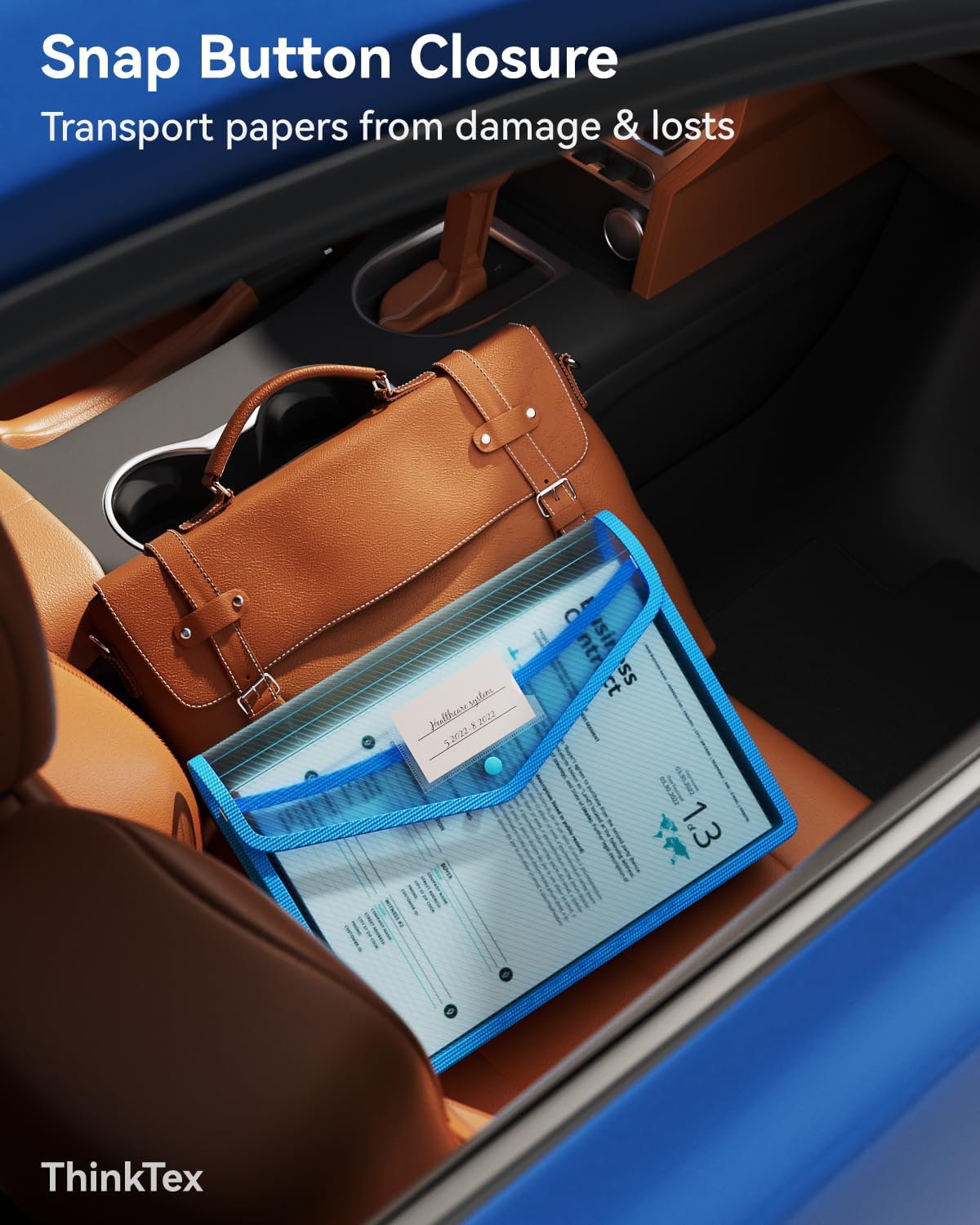 • "SEE THROUGH" PLASTIC FOLDER - ThinkTex transparent expanding file folder with snap closure, large capacity, 5 bright colors, fit letter/A4 size