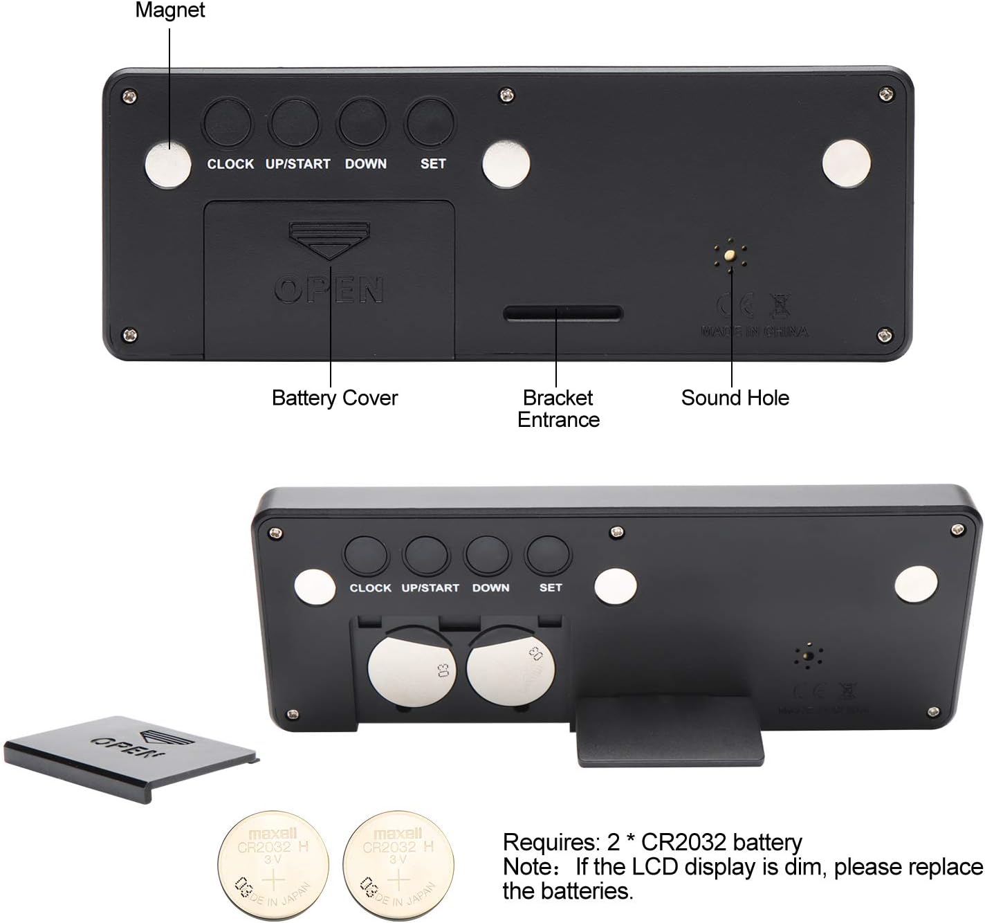 • ✔️Upgraded version: Bigger size & Count-up function. Product size: 15.5 * 5.7 * 1.1cm / 6. 1*2.2*0.4in. LCD screen size: 13.8*4cm / 5.4*1.6in.