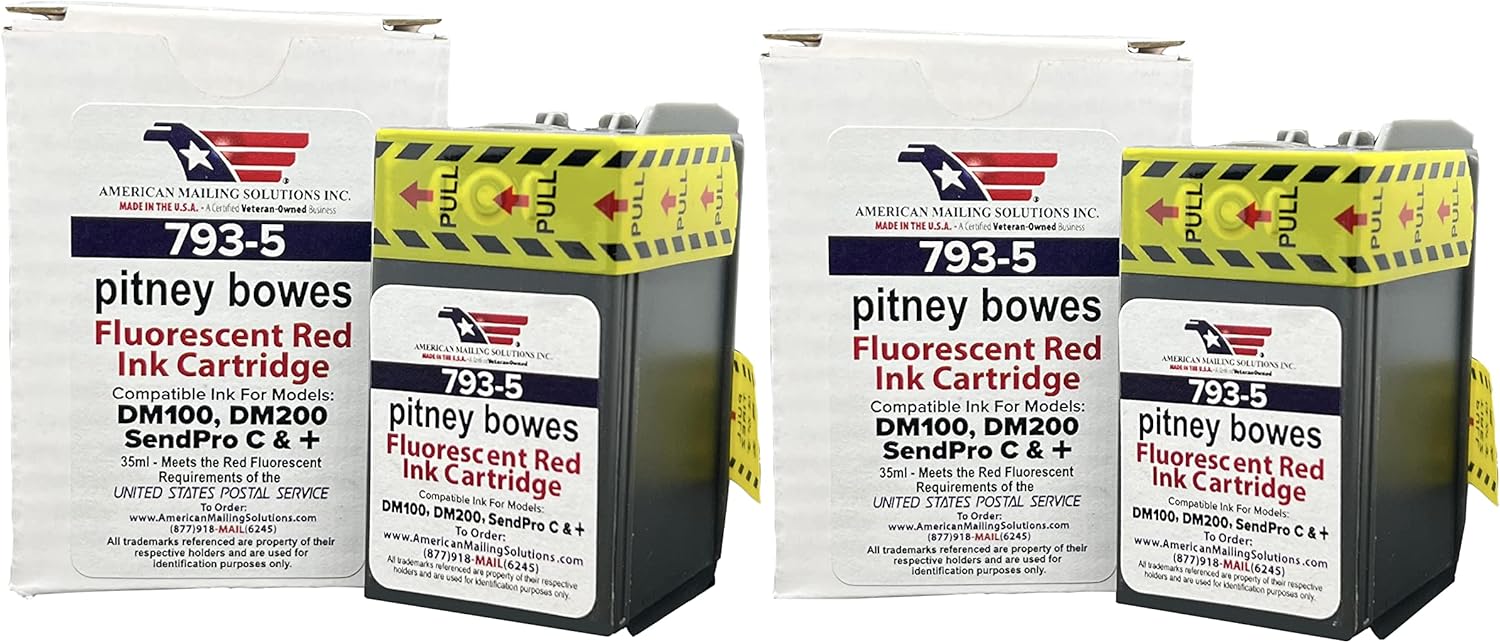 • Our 793-5 USPS approved high-quality red fluorescent ink is professionally formulated to work in your postage meter.