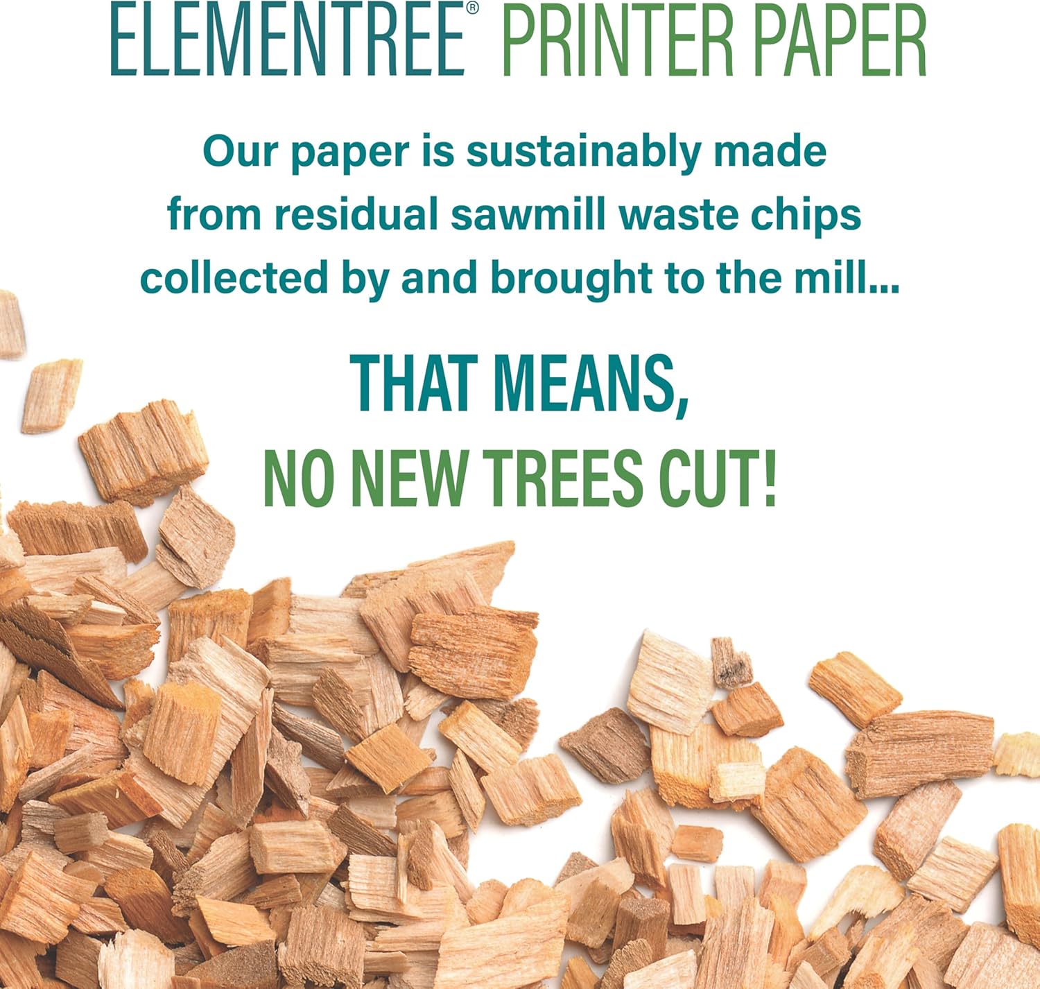 • Elementree printer paper is made in the USA using leftover sawmill wood chips - no new trees are harvested. Its pulping yields 50% more paper from the same amount of wood than standard copy paper