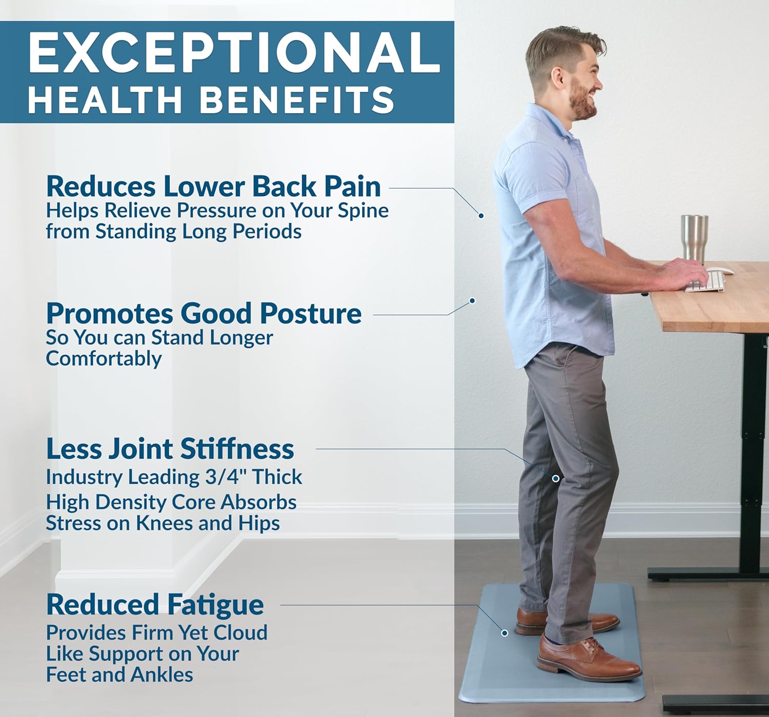 • Anti Fatigue Mat: The ComfiLife anti-fatigue floor mat enhances comfort while standing. It is professionally engineered and can be used as padded kitchen mat or for your standup desk that will not lose support over time