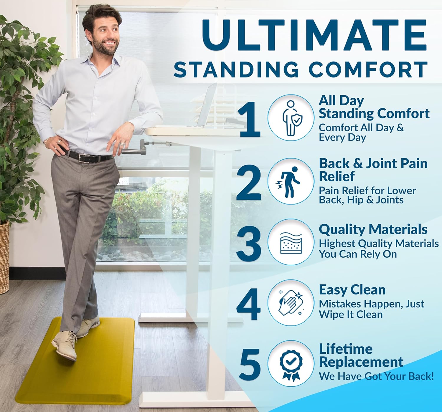 ComfiLife Anti Fatigue Floor Mat – 3/4 Inch Thick Kitchen Mats for Floor, Standing Desk Mat, Kitchen Rug – Comfort at Home, Office – Durable – Stain Resistant – Non-Slip Bottom (20" x 39", Mustard)