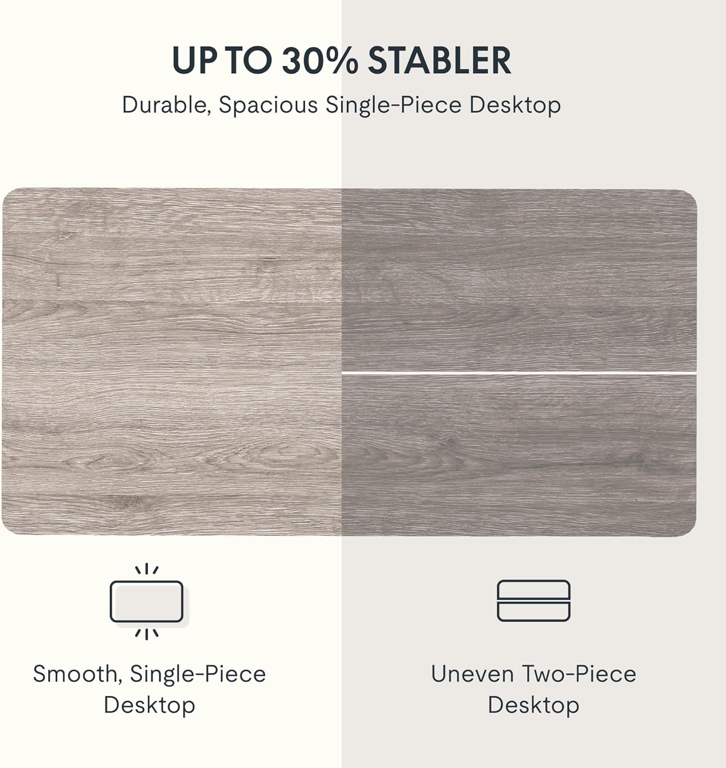 • 1" THICK ONE-PIECE DESKTOP:Experience the elegance of a completely smooth, seamless desktop surface. This design not only enhances the aesthetic but also ensures a sturdier and more stable structure compared to spliced tabletops.