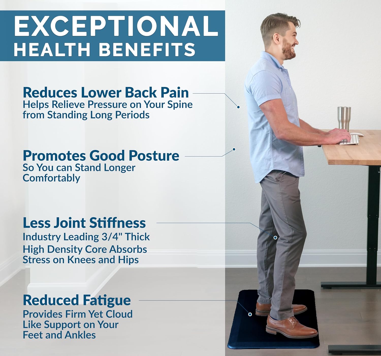 • Easy to Clean and Maintain: Simply wipe down the standing desk mat or anti-fatigue kitchen mat with a damp cloth for quick and easy maintenance, keeping your space clean and comfortable.