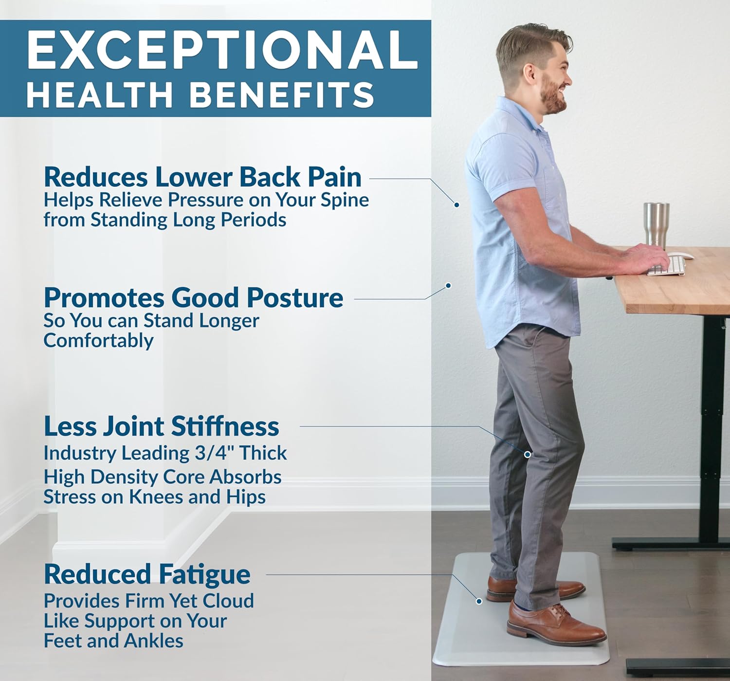 • Easy to Clean and Maintain: Simply wipe down the standing desk mat or anti-fatigue kitchen mat with a damp cloth for quick and easy maintenance, keeping your space clean and comfortable.
