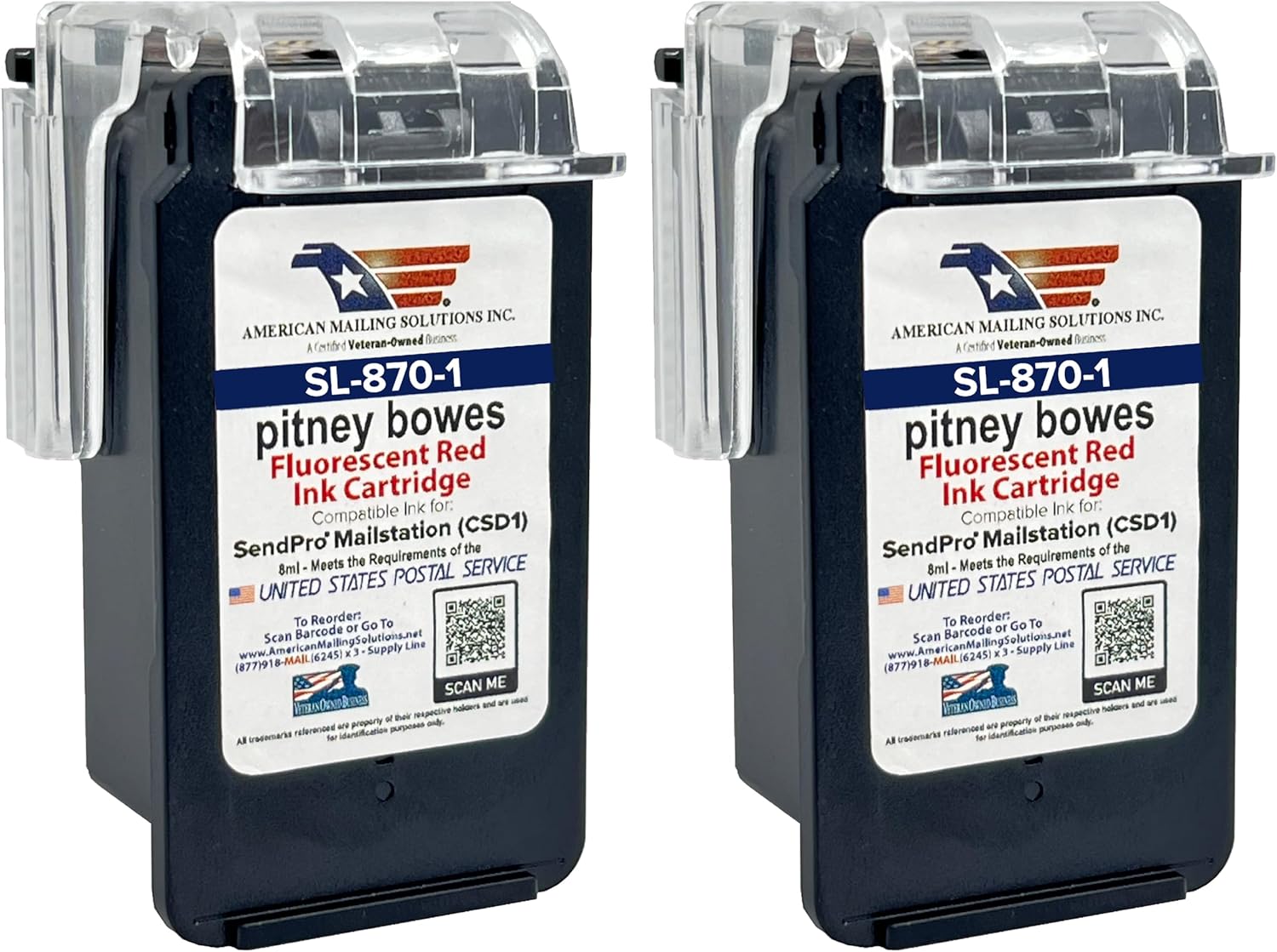 AMERICAN MAILING SOLUTIONS INC. | 2-Pack | PB SL-870-1 Red Fluorescent Ink Cartridge Replacement for SendPro Mailstation (CSD1) Postage Meter…