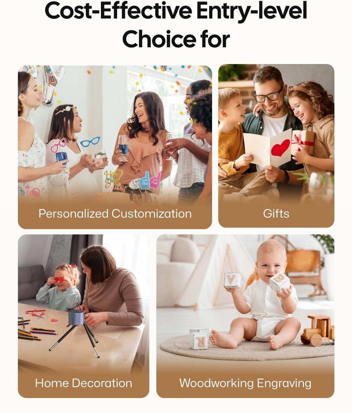 • Completely Friendly for Beginners: 100% tested on 10+ materials. Get free engraving templates (animals/festivals, etc.) + 24/7 exclusive after-sales support for beginners.
