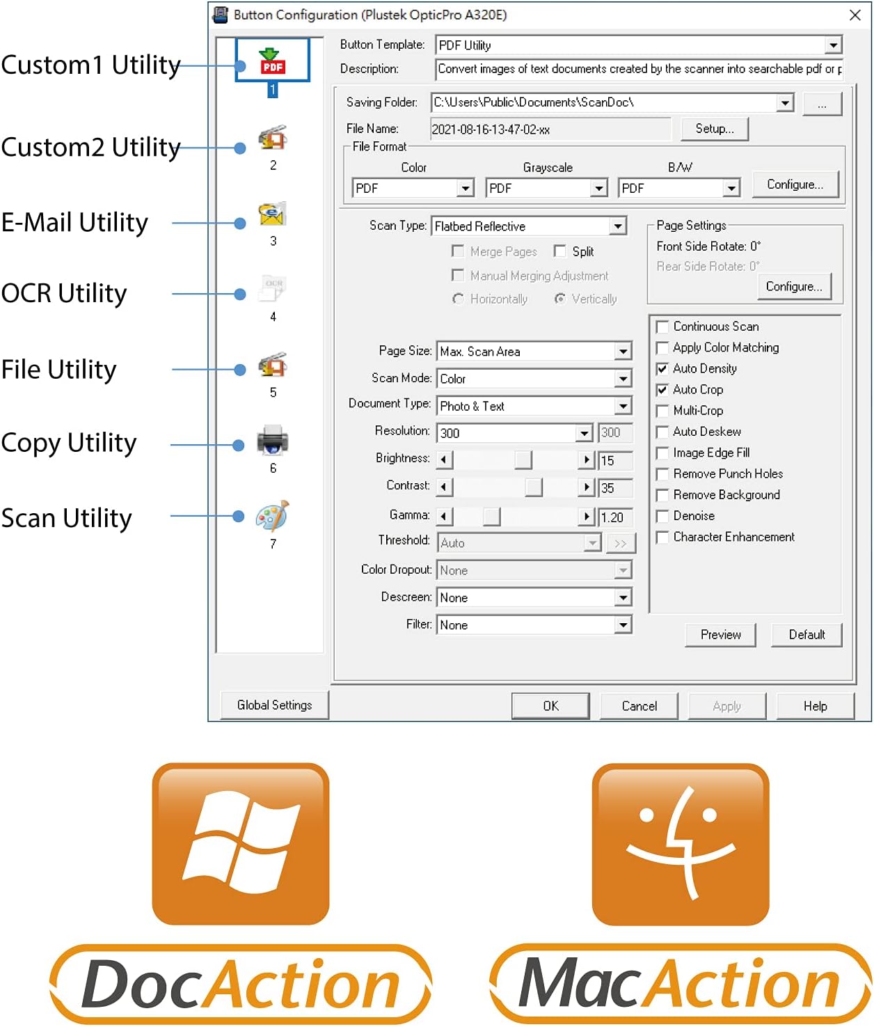 • [EASY FILE MANAGEMENT] - With Doc Action, you easily scan and save to different file format. It also provides quick access to post-scan destinations, including scan-to-print, email, Windows Public Folder, FTP Web Folder. OCR function can enables searchable content on your scanned PDFs for greater productivity.