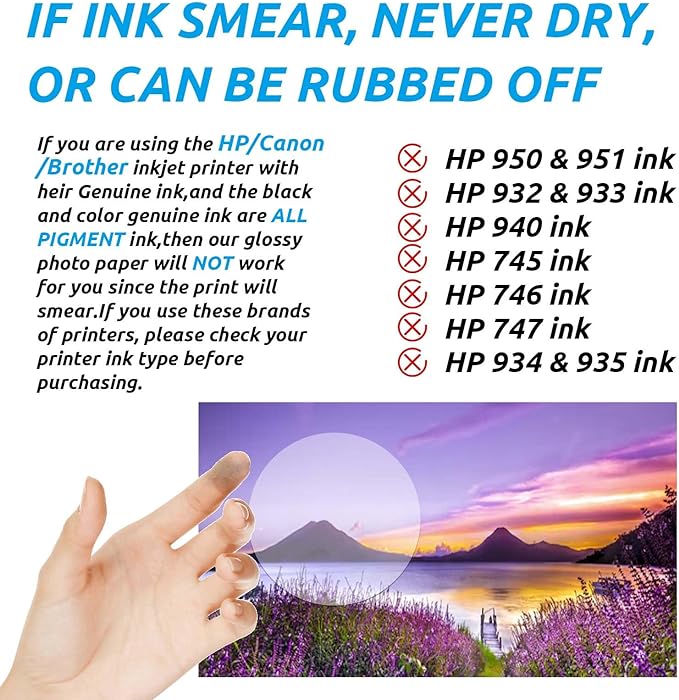 • Inkjet Printer Only: Glossy Finish, Professional Inkjet Quality Prints. Work well with dye ink.