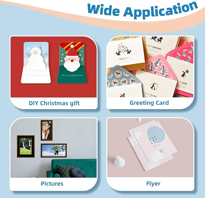 • Wide Use: Heavyweight, Thicker. The thickness of this photo paper can be used to make cards.